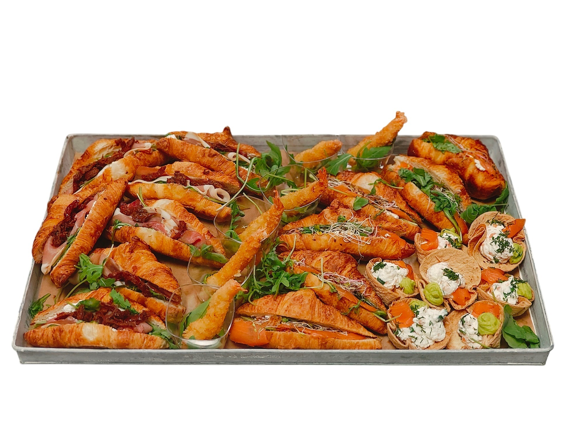 6 sztuk croissant z twarożkiem śmietankowym, łosoś wędzony, rucola, kiełki rzodkiewki
